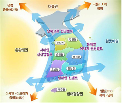 개별 지역이 통합된 광역적 공간 단위에 기초한 신국토 골격을 형성하여 지역특화 발전 및 동반성장을 유도